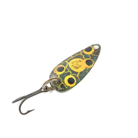 Ši vos 1/32 oz (1 g) sverianti mažoji blisgė yra klasikinis Lou Eppingerio amerikietiško meistriškumo pavyzdys. Šio modelio Frog / Nickel apdaila pasižymi alyviniu pagrindu su geltonais ir juodais taškeliais ant poliruoto nikelio nugarėlės. Apatinėje pusėje įspaustas „Dardevle Skeeter U.S.A.“ ženklas, nurodantis produkto kodą 1855. Vos 2,3 cm (1") ilgio masalas turi pailgą, įgaubtą korpusą, sukurtą virpantiems judesiams metant ar velkiaujant. Šis egzempliorius turi nedidelių naudojimo žymių, būklė vertinama 4/5. Konstrukciją sudaro vienas trišakis kablys, pritvirtintas tvirtu žiedeliu.