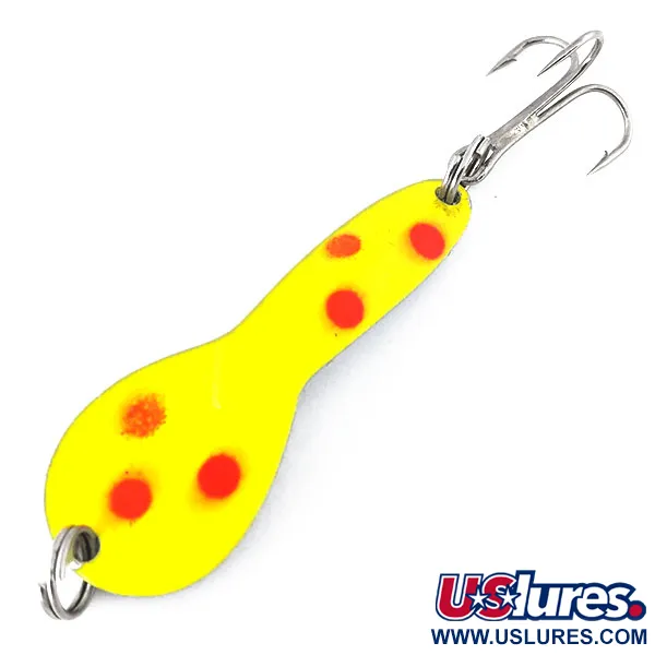 Tiksliai 5 cm ilgio blizgė pasižymi išskirtiniu mentės formos profiliu, ryškiai geltonu pagrindu su penkiais ryškiais raudonai oranžiniais taškais. Acme Dazzler #2 UV (produkto kodas 10800) yra gamyboje nebetęsiama retenybė, išlikusi nenaudotos būklės. Speciali UV danga silpno apšvietimo sąlygomis pradeda stipriai švytėti žaliai – ši techninė savybė sukurta pritraukti žuvų dėmesį iki 1 m gylyje. 7 g sverianti blizgė turi originalius sidabro spalvos žiedelius ir aštrų trišakį kabliuką, todėl yra paruošta spiningavimui ar velkiavimui. Šis JAV pagamintas pavyzdys yra klasikinė ankstyvųjų Acme inovacijų šviesai jautrių dangų srityje išraiška.