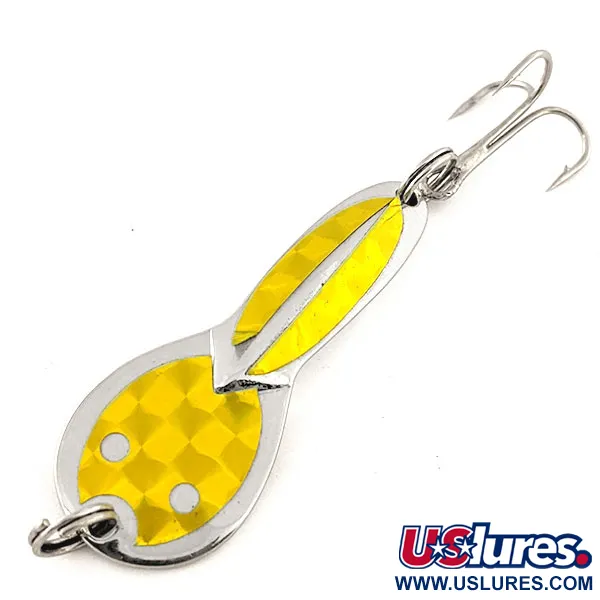 Sverianti 1/4oz (7g), Acme Dazzler #2 UV pasižymi klasikine Nikelio / Aukso apdaila, užtikrinančia didelį vizualinį kontrastą įvairiomis apšvietimo sąlygomis. Šis konkretus pavyzdys, kurio produkto kodas 12000, yra nebegaminamas amerikietiškas lobis, išlaikęs 5/5 būklę. Labiausiai išsiskirianti 5 cm (2") korpuso savybė yra prizminė auksinė juosta; paviršiuje ji gaudo saulės šviesą, o veikiama UV spindulių ar tamsesniame vandenyje transformuojasi į ryškų neoninį žalią švytėjimą. Skirta seklioms vietoms, ši blizgė optimaliai dirba iki 0,9 m (3ft) gylyje. Konstrukciją sudaro tvirtas trišakis kabliukas, pritvirtintas žiedeliu uodegos gale, ir sustiprinta kilpelė galvoje. Masalo profilis puikiai tinka metimui ir vilkiavimui stovinčiame vandenyje, viliojant neagresyviai besimaitinančias lydekas. Apskritos žymės plačiojoje blizgės dalyje sukuria konkretų fokusavimo tašką sekančiai žuviai. JAV pagamintas metalinis korpusas atspindi patvarią kokybę, kuria garsėja Acme prekės ženklas.