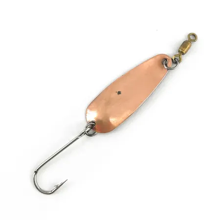 Ši klasikinė #2 varinė vartiklė pasižymi šiltu metaliniu spindesiu, kuris efektyviai atspindi šviesą įvairiomis vandens sąlygomis. 3,5 cm (1 1/2") ilgio ir 1,7 g (1/16 oz) svorio plonojo korpuso masalas yra autentiškas JAV gaminys su išskirtiniu „DICK NITE“ antspaudu kitoje pusėje. Vartiklė sukomplektuota su tvirtu vienšakiu kabliu ir žalvario apdailos suktuku, saugančiu valą nuo susipynimo. Įvertintas 5/5, šis egzempliorius yra išskirtinai gerai išsilaikęs, o švarus metalo paviršius pabrėžia būdingą spindesį, kuriuo „Dick Nite“ garsėja Ramiojo vandenyno šiaurės vakaruose. Šis konkretus modelis (prekės kodas 7378) atspindi ilgą prekės ženklo istoriją gaminant efektyvius masalus upėtakių ir plienagalvių lašišų žvejams, vertinantiems lengvą, tradicinę žūklę.