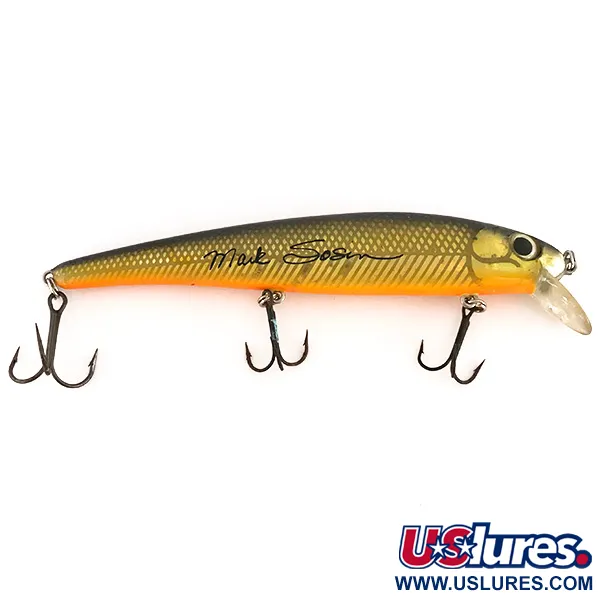 12 cm (4 3/4 colio) ilgio grakštus jerkbait tipo vobleris yra svarbi istorinė detalė iš laikų, kai XCalibur prekės ženklas dar nepriklausė Heddon. Šis vardinis Mark Sosin modelis pasižymi legendinio žvejo parašu ant šono ir specifiniu prekės kodu 7646. Masalas dekoruotas detaliu auksinių žvynelių raštu viršutinėje dalyje ir ryškiai oranžiniu pilveliu – originaliame kataloge ši spalva žymima numeriu 3. 12 g (2/5 uncijos) svorio masalas yra suspenduojantis (suspender), todėl pauzės metu išlieka neutralus vandens sluoksnyje. Komplektacijoje yra trys juodo nikelio trišakiai ir tvirtas, skaidrus liežuvėlis, sureguliuotas 0,9 - 1,5 m (3 - 5 pėdų) nėrimo gyliui. Masalas išlaikytas nepriekaištingai (įvertinimas 5/5), paviršiai švarūs, o detalės nepažeistos. Sukurtas mėtymui ir tvičingui, šis vobleris atspindi aukštus JAV gamybos standartus, būdingus tam laikmečiui.