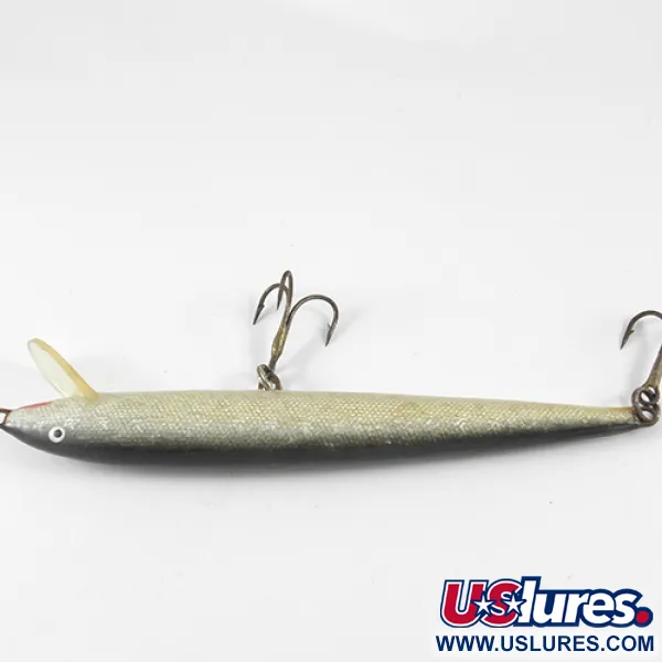 Švytintys sidabriniai ir auksiniai žvyneliai šonuose apibūdina šį suomišką originalą. 12 cm ilgio ir 6 g svorio masalas pasižymi lieknu, „minnow“ tipo profiliu, būdingu tradiciniam Europos dizainui. „Finlandia Uistin“, atpažįstamas iš raudonai ant pilvo atspausto „MADE IN FINLAND“ ženklo, šį pavyzdį užbaigė Natural spalvų gama. Gradientas kinta nuo tamsiai pilkos nugaros iki šviesiai kreminio pilvo, pabrėžto tankiu blizgesiu vidurinėje dalyje. Masalas turi du bronzuotus trišakius kabliukus ir skaidrų, sekliai nardantį plastikinį liežuvėlį, skirtą spiningavimui arba velkiavimui. Šis konkretus masalas, registruotas produkto kodu 1294, išlaiko 4/5 būklės įvertinimą, o originali furnitūra ir apdaila iš esmės nepažeista.