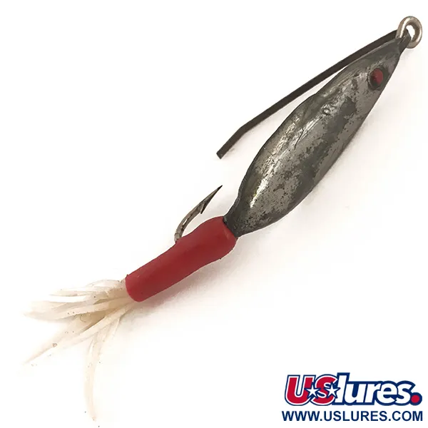 Ši 1/4 oz (8 g) svorio „Hawaiian #3“ su sunkiu švininiu korpusu yra sukurta specialiai žūklei per tankią augmeniją. Šis egzempliorius, pažymėtas prekės kodu 4743, turi originalią vielinę apsaugą nuo žolių, kuri prasideda ties tvirtinimo kilpele ir išlinksta link kabliuko galo, kad apsaugotų nuo kliuvinių sunkiose vietose. Ryškiai raudona movelė dengia kabliuko kotelį, sudarydama ryškų kontrastą su sidabrinio atspalvio korpusu ir pereidama į baltų guminių kutų uodegėlę. 1 3/4 colio (4,5 cm) ilgio masalas išlaikė originalią raudonai dažytą akį prie priekinės dalies ir įspaustą gamintojo logotipą kitoje pusėje. Metalinis paviršius turi nežymių su amžiumi susijusių nusidėvėjimo požymių, todėl jo būklė vertinama solidžiais 4/5 balais, kartu išlaikant klasikinį funkcionalumą. Pagamintas JAV, šis dizainas atspindi Fred Arbogast siekį kurti specializuotus masalus žvejybai tarp tankių lelijų ir šakų.