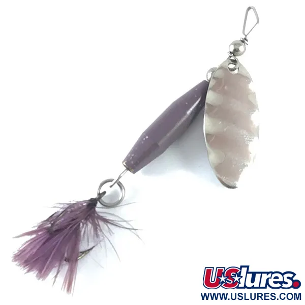 Ši 7g (1/4oz) sverianti sukrė turi pasunkintą purpurinio atspalvio korpusą, kuris puikiai dera su atspindinčiu nikelio lapeliu. Šis konkretus egzempliorius, kurio prekės kodas 3662, yra puikios 5/5 būklės, atspindintis originalią Glen Evans kokybę (JAV). Nikeliuotas lapelis yra aiškiai paženklintas Shyster pavadinimu ir gamintojo ženklu – tai detalė, pagal kurią kolekcininkai atpažįsta ankstyvąją gamybą, kol modelį vėliau perėmė tokie prekės ženklai kaip Luhr Jensen. Bendras masalo ilgis yra 7cm (2 3/4"), jis turi trišakį kabliuką su plunksnomis ir neįprastą ekscentrinę kilpelę valui, sukurtą išlaikyti stabilumą lėtai traukiant masalą.