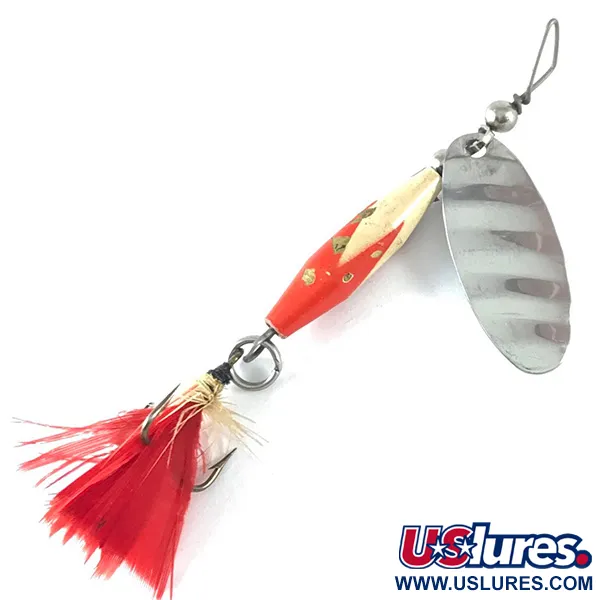 Ryškus raudonai ir baltai dažytas švininis korpusas apibūdina šios 7 g (1/4oz) Glen Evans Shyster vizualinį patrauklumą. Ši 7 cm (2 3/4") vintažinė sukriukė, kurios produkto kodas 3666, pasižymi ekscentrine kilpa, būdinga originaliai Glen Evans produkcijai, dar prieš tai, kai dizainą vėliau perėmė tokios įmonės kaip Luhr Jensen. Nikelio lapelis yra aiškiai pažymėtas Shyster prekės ženklu ir suderintas su trišakiu kabliuku, papuoštu ryškiai raudonomis plunksnomis. Sunkus korpusas sukurtas efektyviam užmetimui įvairiuose gyliuose tiek srovėje, tiek stovinčiame vandenyje, ypač tinka lėtam pravedimui. Pagaminta JAV, masalas yra puikios būklės (įvertinimas 5/5), su švariais dažais ir blizgančiomis metalinėmis detalėmis. Plunksnuotas trišakis išlaiko savo pilną profilį, sukurdamas ryškų kontrastą poliruotam nikelio lapeliui.