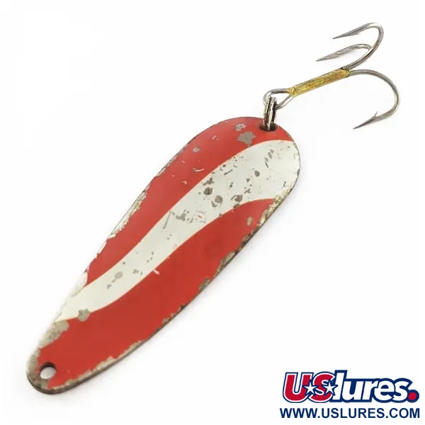 Ši tiksliai 6 cm (2 1/4") ilgio vartiklė yra „Weber“ prekės ženklo, turinčio gilias šaknis Amerikos žūklės įrankių istorijoje, modelis „Gypsy King 0“. Masalo paviršius yra niklio spalvos, padengtas ryškiu įstrižų raudonų ir baltų dryžių raštu, kataloge žymimas produkto kodu 24209. 11 g (2/5 oz) sveriantis masalas turi matomų naudojimo žymių – ant korpuso yra dažų atšokimų ir įbrėžimų, todėl jo būklė vertinama 4 balais iš 5. Masalo konstrukciją sudaro lašo formos metalinis korpusas su štampuota kilpele valui ir tvirtas trišakis kablys, gale pritvirtintas patikimu žiedeliu. Šis JAV pagamintas masalas išlaikė originalią furnitūrą, įskaitant masyvų metalinį trišakį kabliuką.
