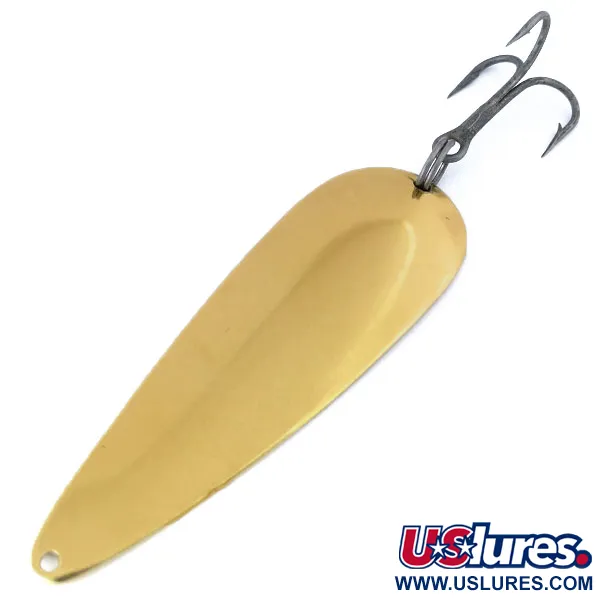 Ši 3/4 uncijos (21 g) svorio žalvarinė blizgė atspindi klasikinį vidurio amžiaus JAV žūklės įrangos dizainą. Ši Weller pagaminta Gypsy King 2 yra 3 1/4 colio (8,5 cm) ilgio, o jos įgaubtoje pusėje yra gilus ir ryškus pavadinimo įspaudas. Šis konkretus pavyzdys, pažymėtas prekės kodu 10699, yra puikios 5/5 būklės ir neturi naudojimo žymių. Storas žalvarinis korpusas sujungtas su tvirtu trišakiu kabliuku, kas atspindi tuometinius gamybos standartus. Paprasta kilpelė priekyje leidžia lengvai paruošti blizgę spiningavimui ar velkiavimui. Žalvarinė danga gerai išsilaikiusi, išlaikant ryškų, atspindintį paviršių visame lašo formos profilyje.