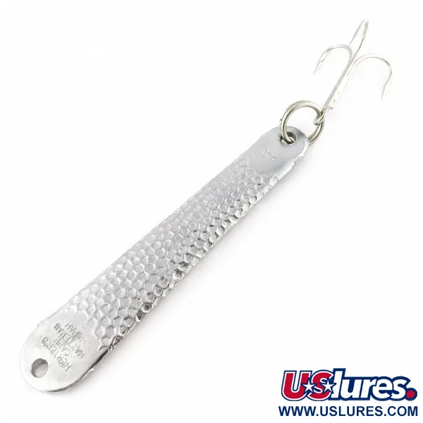 Sverianti 42 g (1 1/2 oz), ši sunki nikeliuota blizgė yra sukurta dideliems gyliams ir rimtai žūklei sūriame vandenyje. 10 cm (4 colių) ilgio korpusas išsiskiria „kaltos“ tekstūros apdaila, skirta gaudyti šviesą, o apatinė dalis pereina į lygią štampuotą atkarpą. Šis konkretus pavyzdys, identifikuojamas pagal produkto kodą 24356, reprezentuoja gamybos laikotarpį, kai amerikiečių įmonė „Herter's Inc.“ savo legendiniams užsakymų paštu katalogams aukščiausios kokybės reikmenis tiekė iš Japonijos. „Cape Hatteras“ pavadinimas nurodo atšiaurius Šiaurės Karolinos pakrantės vandenis, akcentuojant masalo konstrukciją, skirtą dideliems plėšrūnams. Nikelio danga yra itin švari, įvertinta 5/5 būkle, o įspaustas užrašas „Herter's Cape Hatteras Japan“ išlieka ryškus ir lengvai įskaitomas. Masalas turi tvirtą jungiamąjį žiedelį bei blizgų trišakį kabliuką gale, o galvutėje yra tiksliai išgręžta anga valui tvirtinti.