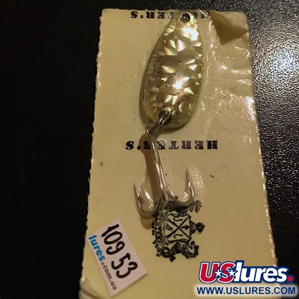Japonijoje pagaminta Herter's Crystal blizgė sveria 3/16 oz (6 g). Ji turi daugialypį kirstą paviršių, kuris sukuria blizgantį vizualinį efektą. Produkto kodas – 10953, blizgės ilgis yra 1 1/2 colio (3,5 cm), ji išlaikiusi ryškią ir švarią apdailą, būdingą nenaudotam egzemplioriui. Blizgės dizainas, dažnai siejamas su upėtakių ar ešerinių žuvų žvejyba, remiasi metalinėmis briaunomis, kurios atspindi šviesą bet kuriuo kampu. Masalas vis dar pritvirtintas prie originalios „Herter's“ kortelės su ikonišku įmonės herbu ir vintažine tipografija. Konstrukciją sudaro vienas sidabrinio atspalvio trišakis kabliukas, sujungtas tvirtu žiedu – abu elementai neturi jokių senėjimo ar nusidėvėjimo požymių. Kadangi masalo būklė vertinama 6 balais, jis yra nenaudotas ir atrodo lygiai taip pat, kaip prieš dešimtmečius palikęs gamyklą.