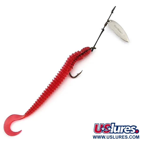 Klasikinis nikelio apdailos „žilvičio lapelio“ (willow blade) tipo sukrės lapelis, ant kurio aiškiai išspaustas „Hildebrandt“ pavadinimas, yra pagrindinis šios 20404 sistemėlės elementas. 4,5 g (3/16 oz) svorio konstrukcija sujungia tradicinę sukrės ašį su permatomu raudonu minkšto plastiko kūneliu. Šis 15 cm (6 colių) rievėtas guminukas yra sumontuotas ant vienšakio kabliuko, sukuriant masyvų profilį metimams įvairiomis sąlygomis. Pagaminta JAV, „Hildebrandt Spinners“ gamykloje; furnitūra pasižymi tiksliu vielos sukimu ir aukštos kokybės lapelio apdaila. Masalas yra idealios 5/5 būklės: nikelio danga švariai atspindi šviesą, o raudonas plastikas išlaikė savo pradinį elastingumą. Kabliukas išlieka aštrus ir patikimai įtvirtintas rievėtose guminuko dalyse.