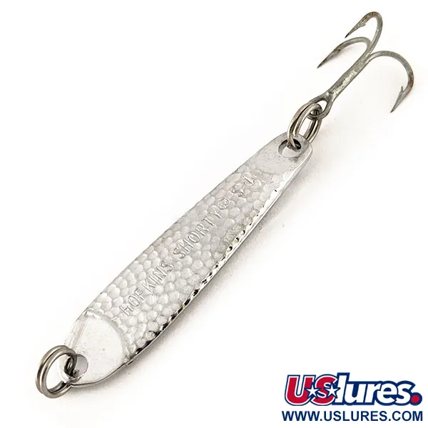 Kalto nikelio apdaila apibrėžia šios klasikinės vertikalaus džigavimo blinkės profilį, pasižymintį duobėta tekstūra, skirta pagauti ir atspindėti šviesą iš įvairių kampų. Kompaktiško 4,5 cm (1 3/4") ilgio ir 9 g (1/3 oz) svorio Hopkins Shorty S1 yra universalus pasirinkimas vertikaliam džigavimui arba spiningavimui. Ant korpuso aiškiai įspaustas gamintojo pavadinimas bei modelis, o kataloge ji žymima prekės kodu 12423. Pagaminta JAV, masyvi metalinė konstrukcija sukomplektuota su aštriu trišakiu kabliu ir tvirtais žiedeliais abiejuose galuose. Šis egzempliorius yra 5/5 būklės, išlaikęs ryškų, švarų paviršių, pabrėžiantį originalų nikelio dangos blizgesį ant kalto korpuso. Šio modelio tankus dizainas specialiai sukurtas greitai pasiekti gylį žvejojant gilesniuose vandens sluoksniuose.