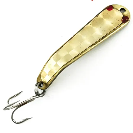 Galinėje dalyje, lygiame auksiniame paviršiuje aiškiai įspaustas „HUS LURE“ pavadinimas ir svorio žyma nurodo šią klasikinę 7 g (1/4 oz) vartiklę. 5 cm (2") ilgio masalo priekinėje dalyje yra išskirtinis kaltas deimantinių žvynelių raštas, skirtas sugauti ir atspindėti šviesą po vandeniu. Šis konkretus Luhr Jensen pavyzdys, kurio produkto kodas 5620, išlaikė originalius raudonus akcentus ties galvute, nors jų kraštai kiek susiliejo su auksiniu korpusu. Pagamintas JAV, siauras profilis buvo sukurtas prasiskverbti pro paviršines sroves ir pasiekti gilesnes žuvų susitelkimo vietas. Konstrukciją sudaro dvigubas žiedelis, laikantis standartinį trišakį kabliuką gale. Masalas turi švelnių praeities žymių, jo būklė vertinama 4/5, pasižymi ryškiu, blizgiu paviršiumi. Šis modelis dažniausiai naudojamas spiningavimui upeliuose, kur srovė suteikia reikiamą žaidimą, arba lengvam velkiavimui.