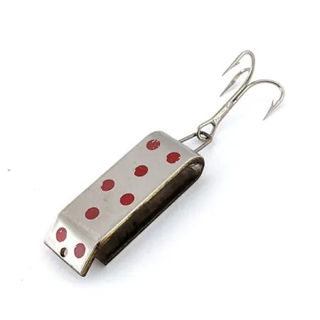 Ant šio Jake's Lures Lil Jake (prekės kodas 14705) poliruoto nikelio paviršiaus puikuojasi septyni ryškiai raudoni taškai. Šis 3,5 cm ilgio JAV pagamintas modelis pasižymi unikalia sulenkta metalo konstrukcija, kuri išskiria jį iš tradicinių plokščių vartiklių. Masalas sveria 9 g, o tai suteikia solidų svorį tokiam dydžiui, leidžiantį pasiekti reikiamą gylį tiek spiningaujant, tiek velkiaujant. Būklė yra 5/5 – korpusas labai švarus, puikiai atspindi šviesą, o raudoni dažai gerai išsilaikę. Konstrukcija sukurta dvigubam žaidimui: ji derina vartymąsi ir sukrės blyksnius, taip viliodama upėtakius bei lašišas skaidriame vandenyje. Galinėje dalyje sumontuotas tvirtas trišakis kablys, o priekyje yra paprasta ir tiesioginė jungtis valui tvirtinti.