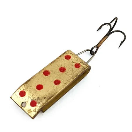 Auksuota danga sukuria ryškiai atspindintį pagrindą išskirtiniam raudonų taškų raštui ant šio 4,5 cm (1 3/4") modelio. 9 g (1/3 uncijos) svorio „Jake's Lures Lil Jake“ pasižymi firminiu U formos išlenktu korpusu – konstrukcija, sukurta sujungti vartiklės ir sukrės savybes. Vertinant furnitūrą, trišakis kablys yra pritvirtintas tvirta vieline kilpa – tai paprastas, bet efektyvus sprendimas, būdingas šiems JAV pagamintiems klasikinio dizaino masalams. Prekės kodo 15954 auksinė danga turi nedidelių naudojimo žymių, tačiau raudonų taškų dažai išlieka itin ryškūs, todėl bendra būklė vertinama 4/5. Dėl platesnio ir trumpesnio profilio, lyginant su tradicinėmis vartiklėmis, masalas išlieka gerai matomas giliuose ar skaidriuose vandenyse, todėl yra patikimas pasirinkimas upėtakių ir lašišų žvejybos entuziastams. Priekinė anga yra tiksliai išgręžta, paruošta tvirtinimui prie sagtuko arba tiesioginiam rišimui prie valo. Ant metalinių paviršių matomi keli įbrėžimai, atspindintys masalo istoriją, tačiau jie neturi jokios įtakos jo konstrukciniam vientisumui.