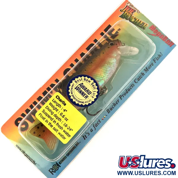 17 g (0,6 oz) pasunkintas korpusas yra šio Joe Bucher hibrido pagrindas, pasižymintis tikroviška Upėtakio (Trout) apdaila. Swim'n Charlie modelis (kodas 11483) užpildo spragą tarp kietų voblerių ir minkštų masalų dėl savo kombinuotos struktūros. 10,2 cm (4") korpusą sudaro minkšta išorė ant patvarios šerdies bei fiksuotas liežuvėlis. Ši forma skirta 0,45–0,6 m (18–24") nėrimo gyliui, todėl ji puikiai tinka spiningavimui seklumose arba paviršiniam velkiavimui. Kalbant apie plūdrumą, jis subalansuotas taip, kad gėlame vandenyje pakibtų (suspending), o sūriame – plūduriuotų, suteikdamas skirtingą naudą priklausomai nuo aplinkos. Šis egzempliorius yra nenaudotas ir atrodo lygiai taip pat, kaip tada, kai laimėjo Amerikos sportinės žūklės asociacijos apdovanojimą už geriausią naują minkštą masalą. Būklės įvertinimas: 6.