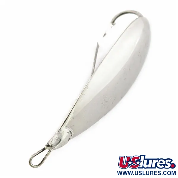 Ši vartiklė, štampuota iš vario ir cinko lydinio, pasižymi išskirtiniu storėjimu centre, kuris padeda išlaikyti vertikalią padėtį traukiant. Ši konkreti Johnson Silver Minnow Weedless, padengta ryškia nikelio danga, turi 5/5 būklės įvertinimą, kas rodo išskirtinį išsaugojimą. 2/5 oz (12 g) svorio ir 2 1/4" (6 cm) ilgio masalas turi firminę vielinę apsaugą nuo žolių, skirtą žvejybai tankiuose žolynuose be užkabų. Skirtingai nei modernios versijos, šis konkretus vienetas #24548 yra iš klasikinio JAV gamybos laikotarpio. Platus vartiklės korpusas sukonstruotas taip, kad generuotų 270 laipsnių svyravimus, skleidžiant blyksnius žemyn ir į šonus, kur plėšrūnai dažniausiai puola. Ši konstrukcija padeda sumažinti valo sukimąsi, išlaikant stabilų ir ritmišką judėjimą vandenyje. Dažnai naudojama su „pork rind“ priedu papildomam vizualiniam patrauklumui, vartiklės žaidimas išlieka stabilus net ir su papildomu tūriu. Kabliukas integruotas tiesiai į korpusą, kad jo gėla visada būtų nukreipta į viršų, efektyviai imituojant mažos žuvelės siluetą tarp lelijų ar žolių.