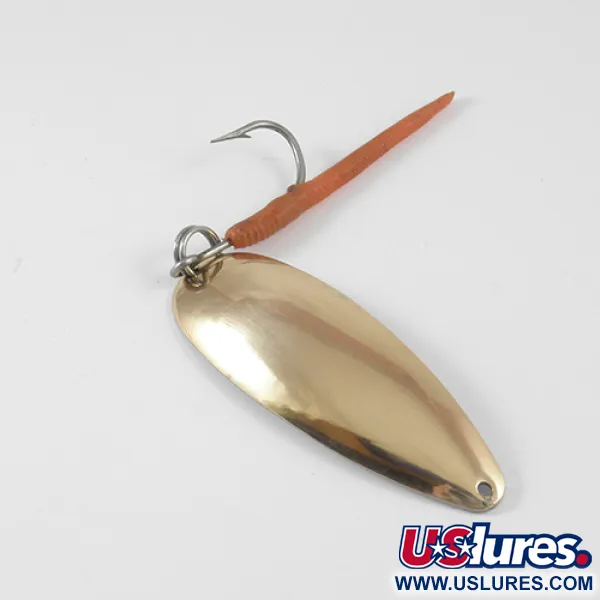 Ši 17 g (3/5 oz) svorio Johnson Sprite yra klasikinė Amerikos žūklės istorijos dalis, pagaminta tuo metu, kai gamyba dar vyko JAV. 7 cm (2 3/4") ilgio vartiklė pasižymi grakščiu, pailgu profiliu, skirtu spiningavimui ir velkiavimui. Šis egzempliorius, pažymėtas produkto kodu 2957, yra vario ir sidabro spalvų derinio, kuris suteikia skirtingą blyksėjimą esant įvairiam apšvietimui. Iškilioje metalinio korpuso pusėje aiškiai įspaustas gamintojo ir modelio pavadinimas, demonstruojantis meistriškumą, būdingą senajai Johnson įrangai. Gale, naudojant žiedelį, sumontuotas viengubas kablys su ryškiai oranžine plastikine uodegėle, sukuriančia ryškų kontrastą su metaliniu kūnu. Šis masalas yra 5/5 būklės, atrodo nenaudotas, su visiškai nepažeistais atspindinčiais paviršiais ir furnitūra.