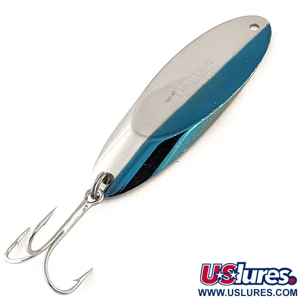 Ši 56 g (2 oz) svorio masyvi metalinė blizgė suteikia masę, reikalingą pasiekti gilias vandens vietas arba užmesti pučiant stipriam vėjui. 8,5 cm (3 1/4") ilgio masalas pasižymi įspūdinga dviejų spalvų estetika – ryškiai mėlynu blyksniu šalia poliruoto sidabrinio paviršiaus. Šis originalus Acme Kastmaster, prekės kodas 12137, yra pagamintas JAV ir turi aiškiai matomą gamintojo antspaudą priekinėje dalyje. Specifinė pleišto formos konstrukcija ir specialus lydinys užtikrina balansą skendimo ir traukimo metu. Masalas komplektuojamas su tvirtu žiedeliu ir dideliu trišakiu kabliu, skirtu dideliems plėšrūnams. Šiuo metu būklė vertinama 5/5, atspindintis paviršius yra itin švarus. Dėl savo universalumo jis tinka tiek džigavimui, tiek velkiavimui įvairiuose vandens sluoksniuose.