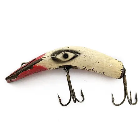 Šio 7 cm ilgio medinio masalo siluetą išskiria specifinis lenktas korpusas – tai ryškus praėjusio amžiaus vidurio Amerikos meistriškumo pavyzdys. 9 g sveriantis „Kautzky Lazy Ike 3“ (prekės kodas 20123) pasižymi kreminės spalvos korpusu su ryškiai raudona priekine dalimi ir didelėmis, dažytomis akimis. Paviršius padengtas smulkiu lako įtrūkimų tinklu, matomas žymus dažų nusitrynimas dėl nuolatinio naudojimo, todėl būklė vertinama 3 balais iš 5. Šone esantis originalus gamyklinis spaudas aiškiai nurodo jo kilmę ir modelį. Du pilvo srityje pritvirtinti trišakiai kabliukai yra stipriai oksidavęsi, kas atspindi ilgą šio Ajovos valstijoje pagaminto masalo istoriją.