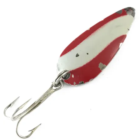 Šios 1 3/4" (4,5 cm) ilgio vintažinės vartiklės lašo formos korpusas pasižymi klasikiniais raudonais ir baltais įstrižais dryžiais priekinėje dalyje. Ant atspindinčios nikeliuotos nugarėlės įspaustas Keystone pavadinimas, žymintis jos JAV kilmę ir paveldą. 3/16 oz (5,5 g) svorio masalas turi originalią furnitūrą, įskaitant sidabrinį žiedelį ir tvirtą trišakį kabliuką. Dažytas paviršius turi naudojimo žymių – šiek tiek atsilupusių dažų kraštuose, todėl šis masalas įvertintas tvirtu 4/5 balu. Ši vartiklė, žymima prekės kodu 6245, išnaudoja kontrastą tarp dažyto viršaus ir poliruoto metalo apačios, kad tolygiai traukiant būtų pasiektas maksimalus blyksėjimas.