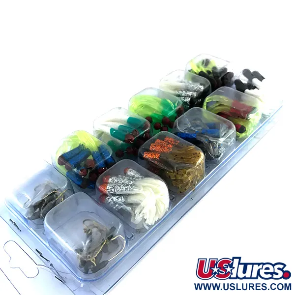 Padalintas į dešimt atskirų skyrių, šis gamykliškai užsandarintas dėklas talpina gausų 2 colių (5 cm) minkštų plastikinių masalų su aštuonkojo stiliaus sijonėliais pasirinkimą. Asortimentą sudaro įvairi spalvų paletė, įskaitant mėlyną, raudoną, geltoną, žalią, sidabrinę, auksinę, juodą ir rudą variantus. Penkiuose konkrečiuose skyriuose yra UV spinduliams reaktyvūs masalai, skirti padidinti matomumą prasto apšvietimo sąlygomis arba gilesniuose vandens sluoksniuose. JAV kompanijos Creme pagamintas rinkinys sukomplektuotas specialiai džigavimui. Kiekviename skyriuje yra 10 atskirų Maxi Tails masalų, iš viso 100 vienetų, kartu su 19 skirtingų galvučių, esančių viršutinėse dėklo dalyse. Produktas, žymimas kodu 8368, pasižymi tiek vientisomis ryškiomis spalvomis, tiek variantais su smulkiais blizgučiais papildomam viliojimui. Kaip nenaudotas daiktas originalioje pakuotėje, šis egzempliorius vertinamas 6 balais.