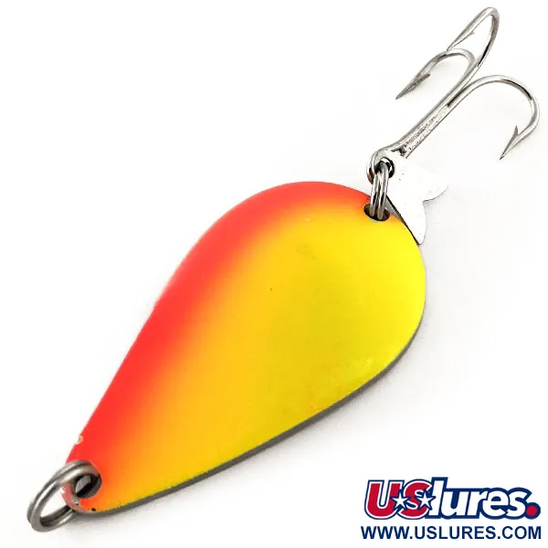 Masyvi 21 g (3/4 oz) konstrukcija suteikia šiai blizgei išskirtinį metimo nuotolį, todėl ji yra patikimas pasirinkimas siekiant tolimas povandenines struktūras. Šis Acme K.O. Wobbler, kurio prekės kodas 11887, yra 5,5 cm (2 1/4") ilgio ir pasižymi ryškiu Geltona / Raudona / Nikelis spalviniu deriniu. Vizualinį profilį sustiprina fluorescencinės savybės; veikiant UV šviesai, geltona dalis tampa ryškiai švytinčia žalia – ši funkcija skirta išlaikyti matomumą giliame ar drumstame vandenyje. Vienas unikaliausių šio JAV pagaminto masalo aspektų yra „Sonic flipper tail“ – maža nikelio plokštelė, pritvirtinta prie galinio žiedo, kuri generuoja specifinius garso dažnius, papildančius masalo svyravimus į šonus. Masalas yra 5/5 būklės, puikiai išsilaikęs, su švaria dažyto paviršiaus ir furnitūros apdaila. Tvirtas trišakis kablys yra saugiai pritvirtintas, paruoštas rimtai žūklei įvairiomis gėlo vandens sąlygomis.