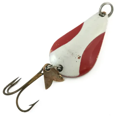 Paauksuota nugarėlė su pasididžiavimu demonstruoja K.O. WOBBLER antspaudą – šios amerikietiškos 5628 serijos klasikos ženklą. Priekinė dalis padengta ryškiais raudonais ir baltais dryžiais, sukuriančiais kontrastingą profilį, kuriuo žvejai pasitiki jau dešimtmečius. 4,5 cm (1 3/4") ilgio ir 14 g (1/2 oz) svorio masalas turi firminę „Sonic flipper tail“ – mažą metalinę mentelę gale, skirtą skleisti garsą traukiant masalą ir imituoti žuvų veiklą. Būklė 4/5: paviršiuje matomas nedidelis nusidėvėjimas, būdingas tokio amžiaus daiktams, tačiau paauksavimas išlieka ryškus, o detalės – nepažeistos. Trišakis kablys suporuotas su specialia vario atspalvio uodegėle, užtikrinančia, kad masalas veiktų taip, kaip numatyta originaliame Acme dizaine.
