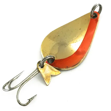 Ši klasikinė JAV gamybos blizgė, sverianti 7 g (1/4 oz), pasižymi ryškia oranžine juostele ant poliruoto, auksuoto korpuso. Įgaubtoje nugarinėje dalyje aiškiai įspaustas K.O. Wobbler prekės ženklas, patvirtinantis Acme gamybos standartus USA. Šis konkretus egzempliorius, kurio prekės kodas 5638, yra 3,5 cm (1 1/2") ilgio, jo būklė vertinama 4/5, o paviršius yra ryškus ir atspindintis šviesą. Išskirtinis šio dizaino bruožas – Sonic flipper uodegėlė: mažas auksinio atspalvio metalinis lapelis, pritvirtintas prie galinio žiedelio. Šis mechaninis komponentas sukurtas skleisti garsą ir vibracijas masalui svyruojant traukimo metu. Blizgė turi originalią furnitūrą, įskaitant aštrų trišakį kabliuką ir tvirtus žiedelius galvutėje bei uodegoje, užtikrinančius patikimą kibimą žvejojant gėluose vandenyse.