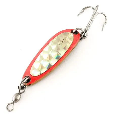 Sverianti 9 g, ši Luhr Jensen Krocodile blizgė yra sukurta situacijoms, kai metimo nuotolis ir gylis yra prioritetas. Raudona / Žalvaris korpusas yra papildytas prizmine perlamutrine žvynelių apdaila, kuri sukuria ryškų blyksnį vandenyje. Viena iš išskirtinių techninių savybių yra fluorescencinių dažų sluoksnis; UV šviesoje raudonas kraštas intensyviai šviečia, todėl tai puikus pasirinkimas žvejojant lašišas giliuose ar drumstuose vandenyse. 4 cm ilgio blizgės storas metalas ir siauras profilis yra Krocodile dizaino bruožai, skirti maksimaliai padidinti metimo nuotolį nuo prieplaukų ar valčių. Šis egzempliorius, pažymėtas produkto kodu 12316, yra 5/5 būklės, atrodo itin švariai, su originalia furnitūra ir nepažeista apdaila. Blizgė sukomplektuota su aukštos kokybės suktuku ir tvirtu trišakiu kabliu.