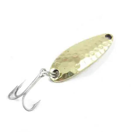 Šio 9g svorio Luhr Jensen klasikos „kalto“ žalvario paviršiai puikiai atspindi šviesą – ši apdaila dešimtmečius vertinama tiek gėluose, tiek sūriuose vandenyse. Tiksliai 4 cm ilgio blizgė yra itin universalus 2964 modelis, pasižymintis ikoniška siaura, pailga forma. Būklė puiki (5/5), matomas gilus žalvario spindesys ir išlaikyta originali gamyklinė išvaizda. Kitoje pusėje Luhr Jensen pavadinimas ir „KROCODILE“ raidės yra giliai ir aiškiai įspaustos metale. Vienas žiedelis tvirtina aštrų trišakį kabliuką prie uodegos, užtikrinant, kad furnitūra būtų tokia pat patikima kaip ir tvirtas korpusas. Kalta tekstūra išgaubtoje pusėje sukuria įvairiakryptį blizgesį traukiant masalą, imituojant mažų žuvų žvynus.