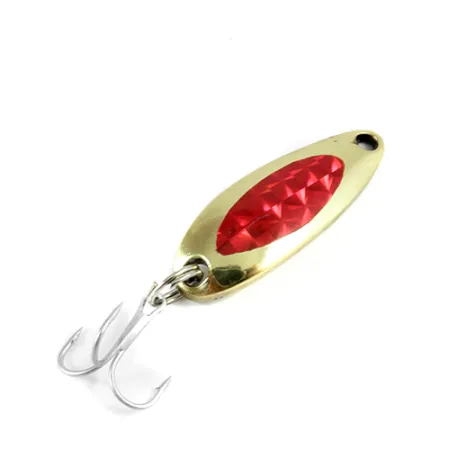 Ši universali 9 g (1/3 oz) svorio Luhr Jensen Krocodile pasižymi ryškia Auksinė / Raudona apdaila, kuri puikiai atspindi šviesą. 4 cm (1 1/2") ilgio blizgė turi išskirtinį raudoną prizminį deimantinio rašto įdėklą poliruotame auksiniame korpuse. Kitoje pusėje yra aiškiai iškalta žymė „LUHR JENSEN KROCODILE“, reiškianti kokybišką gamybą, siejamą su produkto kodu 2965. Storesnis ir siauresnis profilis nei standartinių blizgių specialiai sukurtas tolimiems metimams į gilesnį vandenį arba prieš vėją. Furnitūra puikiai išlaikyta: tvirtas žiedelis ir aštrus trišakis kablys yra paruošti žūklei. Įvertintas 5/5, šis egzempliorius yra išskirtinės būklės, jo metalinis paviršius švarus ir ryškiai atspindintis šviesą. Krocodile išlieka pagrindiniu įrankiu žvejams, gaudantiems lašišas ir plėšrias žuvis, vertinamas dėl metimo efektyvumo ir klasikinio dizaino.