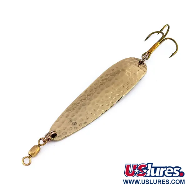 Šio Luhr Jensen Krocodile Die #4 kalinėto aukso paviršiai atlieka konkrečią funkciją – pagauna ir laužia šviesą, užtikrindami puikų matomumą įvairiomis vandens sąlygomis. Ši 14 g (1/2 oz) blizgė pasižymi storesniu ir siauresniu profiliu nei standartiniai masalai, todėl ji puikiai tinka tolimiems metimams nuo molų ar prieplaukų į gilius vandenis. Viena 6,5 cm (2 1/2 colio) korpuso pusė yra giliai kalinėta, o kita pusė išlieka lygi, su aiškiu Luhr Jensen Krocodile įspaudu ir svorio žyma. Įvertinta 5/5 balų, blizgės danga pasižymi ryškiu, tolygiu spindesiu ir yra itin švari. Furnitūrą sudaro tvirtas žalvarinis bačkelinis suktukas galvutėje ir aštrus trišakis kabliukas uodegoje. Šis modelis, pasižymintis stabiliu siūbuojančiu judėjimu vidutinio greičio traukimo metu, jau seniai yra nepakeičiamas įrankis žvejojant lašišas Didžiuosiuose ežeruose. Produkto kodas 9947 yra priskirtas šiai 14 g (1/2 oz) konfigūracijai, kurioje gamykliškai sumontuotas itin tvirtas žiedelis kabliukui.