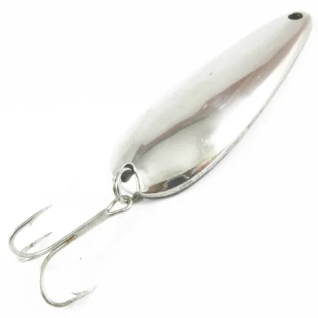 Spindinti nikelio danga apibūdina klasikinį šios 21 g (3/4 oz) vartiklės profilį – tai pagrindinis žvejų įrankis nuo pat prekės ženklo įkūrimo 1929 m. 7 cm (2 3/4") ilgio Len Thompson #1 pasižymi storo metalo korpusu, sukurtu atlaikyti aštrius lydekų dantis. Įgaubtoje nugarėlėje aiškiai įspaustas gamintojo ženklas „LEN THOMPSON NO. 1“, patvirtinantis jos kilmę tarp Kanadoje pagamintų žvejybos reikmenų kolekcininkų. Šis egzempliorius yra 5/5 būklės, pasižymintis ryškiu, atspindinčiu paviršiumi ir tvirta furnitūra. Per stiprų žiedelį pritvirtintas trišakis kablys puikiai tinka velkiavimui arba spiningavimui gaudant ežerinius upėtakius ir lašišas. Atpažįstama dėl lėto vartymosi akcijos, imituojančios tolygiai plaukiančią mailių, ši specifinė nikelio variacija užregistruota produkto kodu 3531.