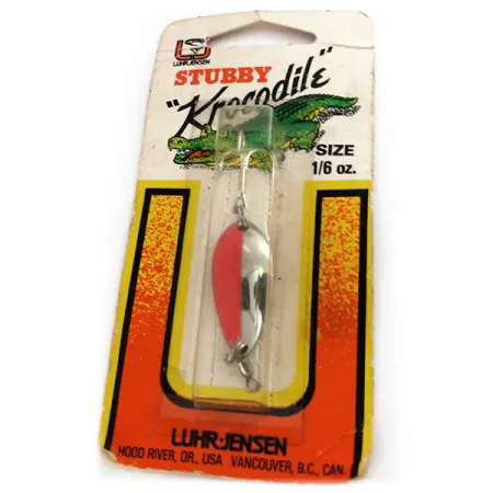 Ši kompaktiška blizgė, sverianti 3/16 oz (4,5 g), atstovauja retą Luhr Jensen katalogo skyrių. Oficialiai žinomas kaip Lil' Kroc (arba Krocodile Stubby) su prekės kodu 9914, šis modelis yra 1 1/4" (3,2 cm) ilgio. Apdaila yra klasikinė Nikelio / Raudonos spalvos, tačiau apžiūra UV šviesoje atskleidžia, kad raudonoji pusė turi stiprų fluorescencinį švytėjimą, todėl ji yra puikiai matoma gilesniuose ar tamsesniuose vandens sluoksniuose. Šis storasienis metalinis korpusas pasižymi giliu, grubiu išlenkimu, kuris jį išskiria iš standartinių pailgų Krocodile profilių. Masalas yra nenaudotas, vis dar pritvirtintas prie originalios mažmeninės prekybos kortelės iš Hood River, Oregon gamybos eros. Jis sukomplektuotas su gamykliniu trišakiu kabliuku ir viršuje pritvirtintu suktuku, paruoštas mėtymui arba vertikaliam džigavimui žvejojant upėtakius ir ešerines žuvis.