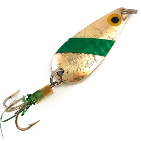 Auksuotas paviršius dengia šios 10 g (1/3 oz) blizgės korpusą, pabrėždamas klasikinį Lindy / Little Joe masalo dizainą. Per 5,5 cm (2 1/4") ilgio lapelio priekinę dalį einanti žalia įstriža juosta su korio raštu suteikia aukso apdailai išskirtinį vizualinį elementą. Ši Lindy Finsel, žymima prekės kodu 4798, turi geltonai ir juodai nudažytą akį šalia tvirtinimo kilpelės. Pagamintas JAV, masalas turi keletą lengvų paviršiaus žymių nuo laikymo žvejybos dėžutėje, tačiau išlaiko tvirtą 4/5 būklės įvertinimą. Kitoje blizgės pusėje yra įspaustas modelio pavadinimas – standartinis kokybės ženklas šiai Amerikos gamybos erai. Prie uodegos pritvirtintas trišakis kablys, papuoštas žaliais blizgučiais (tinsel) ir geltonu kembriku. Tvirti žiedeliai abiejuose galuose leidžia masalą naudoti įvairiems mėtymo ir velčiavimo būdams.