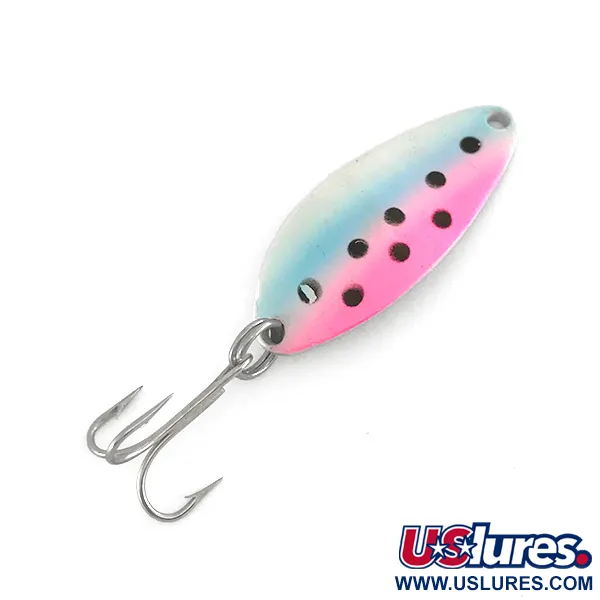 7 g (1/4 oz) svoris suteikia šiai vartiklei reikiamą tankį, kad metimo metu ji greitai pasiektų tikslinį gylį. „Trout“ spalvinė gama sukurta naudojant trijų pakopų perėjimą iš baltos į mėlyną ir rožinę, akcentuojant juodais taškais platesnėje kūno dalyje. Poliruoto nikelio nugarėlėje įspaustas tekstas „Little Cleo Wigl-Lure A Seneca Lure“ patvirtina, kad šį gaminį (produkto kodas 7937) JAV pagamino „Seneca“ įmonė iki jos įsigijimo „Acme“ bendrovei devintojo dešimtmečio pradžioje. 4 cm (1 1/2") ilgio vartiklė turi kokybiškai iškirstą kilpelę valui ir gale sumontuotą trišakį kabliuką. Būklė vertinama 5/5, masalas turi itin mažai senėjimo žymių, išlaikytas nudažyto upėtakio rašto ryškumas ir metalinės dangos blizgesys. Žiedeliai išlieka tvirti ir funkcionalūs iškart naudoti žvejyboje arba kolekcijoje.
