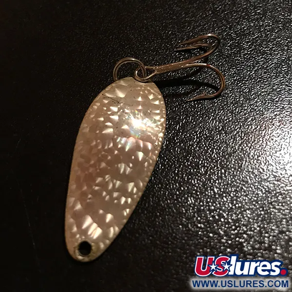 Kaltas „Crystal“ rašto žvynelių raštas laužo šviesą ant šios 4 cm (1 1/2") vintažinės blizgės paviršiaus. Pažymėta išskirtiniu „Little Cleo Wigl-Lure A Seneca Lure“ antspaudu, ši blizgė reprezentuoja originalią gamybos erą iki prekės ženklo įsigijimo „Acme“ kompanijos devintojo dešimtmečio pradžioje. „Crystal (Golden Scale)“ apdaila suteikia gilią tekstūrą, sukurtą imituoti šviesos atspindžius nuo žuvies žvynų. 7 g (1/4 oz) svorio blizgė komplektuojama su originalia furnitūra ir tvirtu trišakiu kabliuku, demonstruojant klasikinį to laikotarpio JAV gamybos standartą. Šis egzempliorius, identifikuojamas pagal prekės kodą 11102, yra puikios būklės, įvertintas 5/5 už puikiai išlaikytą apdailą ir ryškius metalo antspaudus. Lašo formos korpusas yra specialiai subalansuotas tolimiems metimams ir velkiavimui.