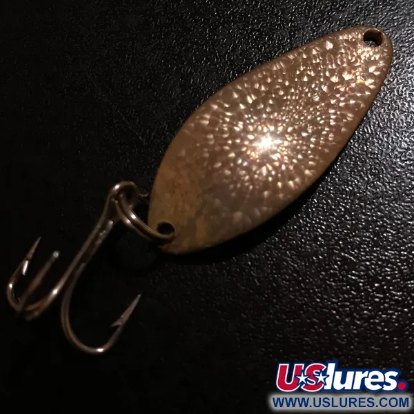 Iškaltas Crystal tekstūra, varinių žvynų paviršius ant šios vintažinės blizgės atspindi šviesą unikaliu, daugialypiu būdu. Ši konkreti Little Cleo Crystal, kurios prekės kodas 7672, yra pagaminta dar prieš tai, kai devintojo dešimtmečio pradžioje Seneca Lure Co. buvo perimta Acme Tackle. Sverdama 1/4oz (7g) ir būdama 1 1/2 colio (4cm) ilgio, blizgė pasižymi ikonišku lašo formos siluetu, kuris tapo standartu visose JAV žvejų dėžutėse. Galinėje masalo pusėje aiškiai įspaustas Seneca prekės ženklas, o pavyzdys yra 5/5 būklės su puikiai išlikusiu paviršiumi ir aiškiais žymenimis. Klasikinis trišakis kablys pritvirtintas tvirtu žiedeliu apačioje, o viršutinė kilpelė skirta suktukui ar pavadėliui. Kolekcininkai dažnai ieško šių originalių Seneca gamybos versijų dėl ypatingo jų įspaudų gylio ir charakterio.