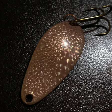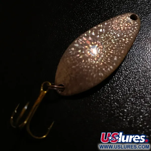 Ant nugarėlės įspaustas ikoniškas „Little Cleo“ prekės ženklas, ši 4 cm (1 1/2") vartiklė pasižymi reta Crystal (Golden Scale) apdaila – tekstūriniu raštu, skirtu pagauti ir sklaidyti šviesą. 7 g (1/4 oz) svorio egzempliorius atspindi originalios JAV įsikūrusios „Seneca Lure Co.“ meistriškumą, pagamintas dar prieš tai, kai devintojo dešimtmečio pradžioje prekės ženklą perėmė „Acme“. „Sudužusio stiklo“ efektas masalo priekyje (produkto kodas 8399) išlieka itin ryškus ir atspindintis šviesą. Furnitūrą sudaro tvirtas viršutinis žiedelis ir aštrus, bronzuotas trišakis kablys. Šis konkretus masalas yra 5/5 būklės, paviršiai puikiai išlaikyti, o įspaudai ryškūs. Plati, kuprota vartiklės forma yra firminis Little Cleo dizaino bruožas, dažnai naudojamas spiningavimui ir velkiavimui.