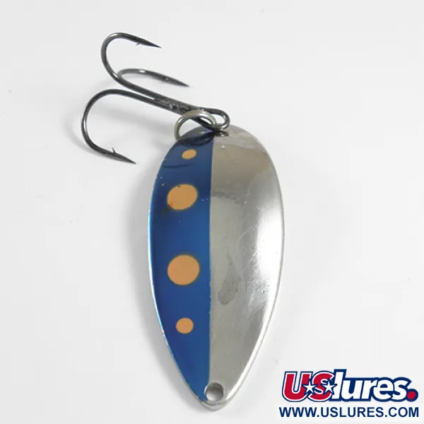 Ši „Seneca“ gamybos blizgė, sverianti solidžius 21 g (3/4 oz), pasižymi klasika tapusia mėlynos, raudonos ir nikelio apdaila su ryškiu mėlynu skydeliu, papuoštu šiltų tonų taškeliais. 6,5 cm (2 1/2 colio) ilgio egzempliorius, pažymėtas produkto kodu 1745, yra puikus originalaus „Seneca Lure“ dizaino pavyzdys, sukurtas dar prieš tai, kai devintojo dešimtmečio pradžioje prekės ženklą įsigijo „Acme“. Kitoje pusėje giliai įspausta garsioji „Hula Girl“ šokėja ir „WIGL LURE“ ženklas – detalė, itin vertinama kolekcininkų, tikinčių, kad būtent šis siluetas buvo masalo sėkmės paslaptis. Poliruotas nikelio paviršius ir originali furnitūra yra gerai išlaikyti, o būklė vertinama 4/5. Storasienis metalinis korpusas apginkluotas tvirtu trišakiu kabliuku, o viršuje ir apačioje aiškiai įspaustas svoris bei kultinis „Little Cleo“ pavadinimas.