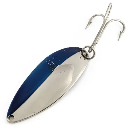 Priekinė dalis, padalinta į sodriai mėlyną ir poliruoto chromo apdailą, paverčia šią „Seneca“ gamybos vartiklę išskirtiniu vintažinės įrangos pavyzdžiu. 6,5 cm ilgio ir 21 g svorio masalas pasižymi ankstyvajai gamybai būdingu tvirtumu. Kitoje pusėje aiškiai įspausta kultinė „Hula Girl“ šokėja – tai „Seneca Lure Company“ eros ženklas, naudotas iki „Acme“ įsigijimo devintojo dešimtmečio pradžioje. Kolekcininkai dažnai ieško būtent šio šokėjos atvaizdo, nes vėlesnėse masinės gamybos versijose jo nebeliko. Šis egzempliorius, kurio prekės kodas 22171, yra puikios būklės, o jo būklė vertinama 5 iš 5. Įspaudas kitoje pusėje taip pat patvirtina „Seneca Tackle Co.“ kilmę bei nurodo svorį patogiam atpažinimui. Tvirtinimo taške yra tvarkingas žiedelis, sujungtas su originaliu trišakiu kabliuku.