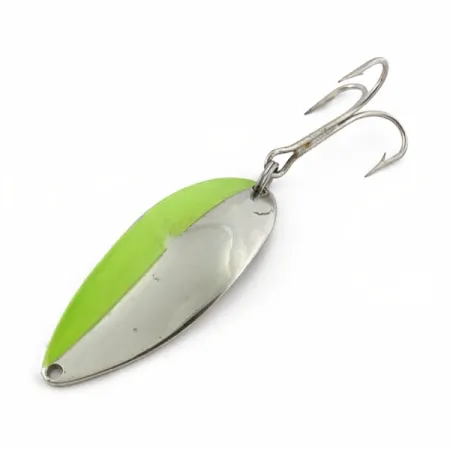 Nikeliuoto paviršiaus ir žalių atspalvių danga pasižymi ši 21 g vartiklė – toks svoris užtikrina stabilumą tiek metant, tiek traukiant. Ši 6,5 cm ilgio „Little Cleo (Hula Girl)“ yra tikra žūklės istorijos dalis, pagaminta „Seneca Lure“ kompanijoje dar prieš tai, kai devintojo dešimtmečio pradžioje prekės ženklą perėmė „Acme“. Patyrę žvejai dažnai ieško būtent šios „Seneca“ gamybos partijos, nes ant nugarėlės yra išspaustas ikoniškas hula šokėjos atvaizdas – detalė, kurios šiuolaikinėse versijose nebėra. Masalas turi prekės kodą 23830, yra išlaikęs švarią originalią išvaizdą, o jo būklė vertinama 5/5. Furnitūrą sudaro tvirtas trišakis kablys, pritvirtintas patikimu žiedeliu, kas būdinga aukštai JAV pagamintų originalių „Seneca“ reikmenų kokybei.