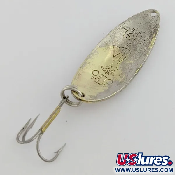 Iškaltas kultinis „Hula Girl“ siluetas kitoje pusėje iškart leidžia atpažinti šią 14 g (1/2 oz) blizgę kaip klasikinę Little Cleo iš originaliosios Seneca eros. Šis 5,5 cm (2 1/4") ilgio egzempliorius pasižymi dviejų tonų nikelio ir žalvario apdaila, kuri atspindi nuoširdų daug mačiusios masalų dėžutės charakterį, įvertintą 3/5 būkle. Prieš Acme Tackle įsigijimą devintojo dešimtmečio pradžioje, Niujorke įsikūrusi Seneca Tackle Company gamino šiuos masalus su detalia šokėjos graviruote – elementu, įkvėptu egzotiškos šokėjos, kurią dainų autorius C.V. „Charlie“ Clark matė 1930-aisiais. Daugelis patyrusių žvejų vis dar tiki, kad šokėjos logotipas yra sėkmės ženklas žvejojant upėtakius ir lašišas Didžiuosiuose ežeruose. Šis konkretas masalas, pažymėtas produkto kodu 24443, turi klasikinę tvirtą furnitūrą ir trišakį kabliuką, pritvirtintą stipriu žiedeliu. Žalvario pagrindas persišviečia pro nikelio sluoksnį išgaubtoje pusėje, sukuriant ryškų vizualinį kontrastą, kuris skiriasi nuo šiuolaikinių perleidimų.