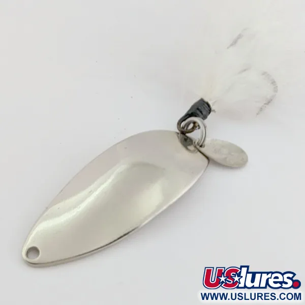 14 g štampuoto metalo suteikia šiai nikeliuotai vartiklei solidų svorį, reikalingą tolimiems metimams. Kitoje pusėje matomas ikoninis šokėjos „Hula Girl“ siluetas, tapęs originalios Seneca Lure produkcijos ženklu dar prieš tai, kai devintojo dešimtmečio pradžioje prekės ženklą įsigijo Acme. Daugelis žvejų tiki, kad būtent šis šokėjos logotipas yra sėkmės paslaptis, siejama su originaliu modeliu. Ryškus nikelio paviršius užtikrina puikų matomumą įvairiomis vandens sąlygomis. 5,5 cm ilgio vartiklė pasižymi išskirtiniu išgaubtu profiliu ir trišakiu kabliuku su baltomis plunksnomis, pridedančiu subtilų pulsuojantį vaizdinį elementą. Įvertinimas 5/5 – metalinis paviršius išlieka išskirtinai švarus ir atspindintis šviesą, o originalūs įspaudai yra ryškūs ir aiškūs. Šis egzempliorius, pažymėtas produkto kodu 24509, priklauso gamybos laikotarpiui iki Acme.