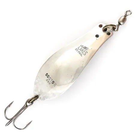 Šios 7 g (1/4 oz) blizgės priekinėje pusėje esantis nikeliuotas paviršius yra pažymėtas „10,000 LAKES ST. PAUL“ ir „DOCTOR 255“ įspaudais, identifikuojančiais ją kaip klasikinę Minesotos žvejybos istorijos dalį. „Prescott Spinner“ pagaminta blizgė Little Doctor 255 (produkto kodas 4989) pasižymi ryškiu kontrastu tarp blizgaus nikelio paviršiaus ir šilto auksinio atspalvio nugarėlės. 4,7 cm (1 3/4") ilgio masalas apginkluotas tvirtu trišakiu kabliu ir tūpiniu suktuku prie kilpelės. Šis konkretus egzempliorius įvertintas 4/5 būkle, matomi subtilūs senovinės kilmės ženklai, tačiau jis išlieka itin švarus. Lašo formos blizgė yra būdingas JAV įmonės dizainas, skirtas universaliam spiningavimui.