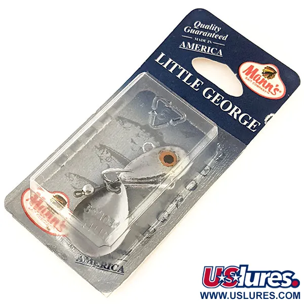 Šis klasikinis „Mann’s Bait“ uodeginis sukrė (tail spinner), sveriantis 12 g (2/5 oz), yra bazinis įrankis žvejams, gaudantiems būriuose plaukiojančias žuvis įvairiuose gyliuose. Šis egzempliorius, pažymėtas prekės kodu 12135, yra nenaudotas originalioje pakuotėje, išlaikęs aukštos kokybės apdailą, būdingą senajai amerikietiškai produkcijai. 4 cm (1 1/2") švininis korpusas yra „Hammered Nickel / Nickel“ apdailos, suteikiančios metalinį blizgesį, kuris imituoja smulkias žuveles. Po korpusu yra vienas trišakis kablys, o gale sumontuotas lapelis suprojektuotas suktis tolygiai traukiant arba masalui grimztant į dugną. Jufaloje (Eufaula), Alabamos valstijoje, sukurtas „Little George“ yra sunkiai skęstantis džigas, galintis pasiekti gilias struktūras arba būti toli užmetamas į paviršiuje besimaitinančius būrius. Pakuotėje yra originalus prekės ženklas ant tamsiai mėlynos kortelės.