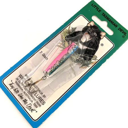 Šis 7 g (1/4 uncijos) svorio „Little Tasmanian Devil“ yra klasika tapęs Australijoje pagamintas masalas, sukurtas „Wigston's Lures“ įvairiems spiningavimo ir velkiavimo būdams. 4 cm (1 1/2 colio) sparnuotas korpusas nudažytas ryškiu „Rainbow Trout“ raštu: ryškiai rožinė nugarėlė pereina į mėlynai sidabrinį žvynų raštą su smulkiais juodais taškeliais. Kaip nenaudotas egzempliorius (6 būklė), jis išsaugotas originalioje mėlynai baltoje pakuotėje su kultiniu šūkiu „They bite like the Devil“ ir Tasmanijos kilmę patvirtinančiu „28 Gepp Parade“ adresu. Kitoje pakuotės pusėje pateikiamos išsamios montavimo instrukcijos, kaip tvirtinti suktuką su segtuku arba verti valą tiesiai per masalo korpusą iki kabliuko ir karoliuko. Šis gaminys žymimas kodu 11568 ir pasižymi tradicine sparnuota forma, kuri lydi prekės ženklą nuo pat jo įkūrimo.