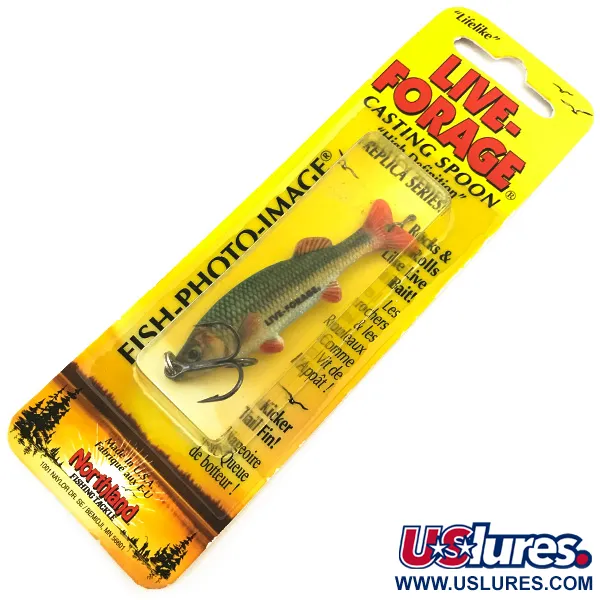 Ypatingai detali, fotorealistinė „vaivorykštinės žuvies“ apdaila išskiria šį masalą, kuriame naudojama „Northland“ „Fish-Photo-Image“ technologija, skirta imituoti natūralų grobį. Ši 7 g (1/4 oz) blizgė iš „Live Forage Replica“ serijos yra 6 cm (2 1/4") ilgio ir skirta spiningavimui arba velkiavimui gaudant tokias žuvis kaip sterkas, ešerys ir lydeka. Produkto kodas 5140, masalas turi štampuotą žalvarinį korpusą, kuris užtikrina ryškų blykčiojimą, o „Kicker Tail Fin“ pelekas sustiprina vizualinį profilį. Kadangi šio gaminio būklė įvertinta 6 balais, jis liko nenaudotas originalioje lizdinėje pakuotėje, taip išsaugant techninėse specifikacijose nurodytas švytėjimo tamsoje savybes. Prie apatinės blizgės korpuso dalies pritvirtintas vienas didelis trišakis kablys.