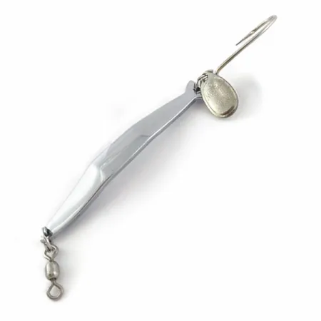 Šis JAV pagamintas 14 g (1/2oz) svorio egzempliorius atspindi specializuotą „pre-Rapala“ eros „Luhr Jensen“ meistriškumą. Šio „Kokanee King“ (produkto kodas 23916) blizgi nikelio danga išliko itin ryški ir šviesi. 7,5 cm (3") ilgio korpusas pasižymi savita maža lašo formos metaline plokštele, įtaisyta tiesiai prie fiksuoto vienšakio kabliuko kilpelės. Ši specifinė konstrukcija turi tvirtą suktuką, pritvirtintą prie priekinės kilpelės, skirtą stabiliai velkiavimo eigai. Atsižvelgiant į 5/5 būklę, metaliniai paviršiai yra švarūs ir be jokių žymių, todėl tai yra išskirtinis šios JAV pagamintos retenybės pavyzdys. Kabliuko gėluonis išliko aštrus ir originalus, išsaugotas dėl puikios masalo būklės.