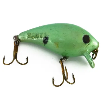 1/4 oz (7 g) svoris suteikia šiam sekliai neriančiam vobleriui masės, reikalingos tiksliems metimams į tankią augmeniją. 2 1/4" (6 cm) ilgio masalas pasižymi perlamutriniu Green / Black padengimu ir atpažįstamu „BABY“ reljefiniu įspaudu ant šono. Mann's Bait sukonstravo šį modelį taip, kad jis laikytųsi viršutiniame vandens sluoksnyje, pasiekdamas maksimalų vos 0,3 m (1 ft) gylį. Dizainas apima unikalų akių raštą su smulkiomis radialinėmis linijomis ir vieną juodą šoninį tašką, būdingą vintažinėms partijoms iš USA. Išlaikyta visa originali furnitūra, įskaitant du tvirtus trišakius kabliukus ir žiedelį valui tvirtinti, todėl prekė įvertinta 5/5 būkle. Produkto kodas 9711 išlietas su trumpu, stačiu liežuvėliu, kuris riboja nardymą, kartu išlaikant teigiamą plūdrumą.